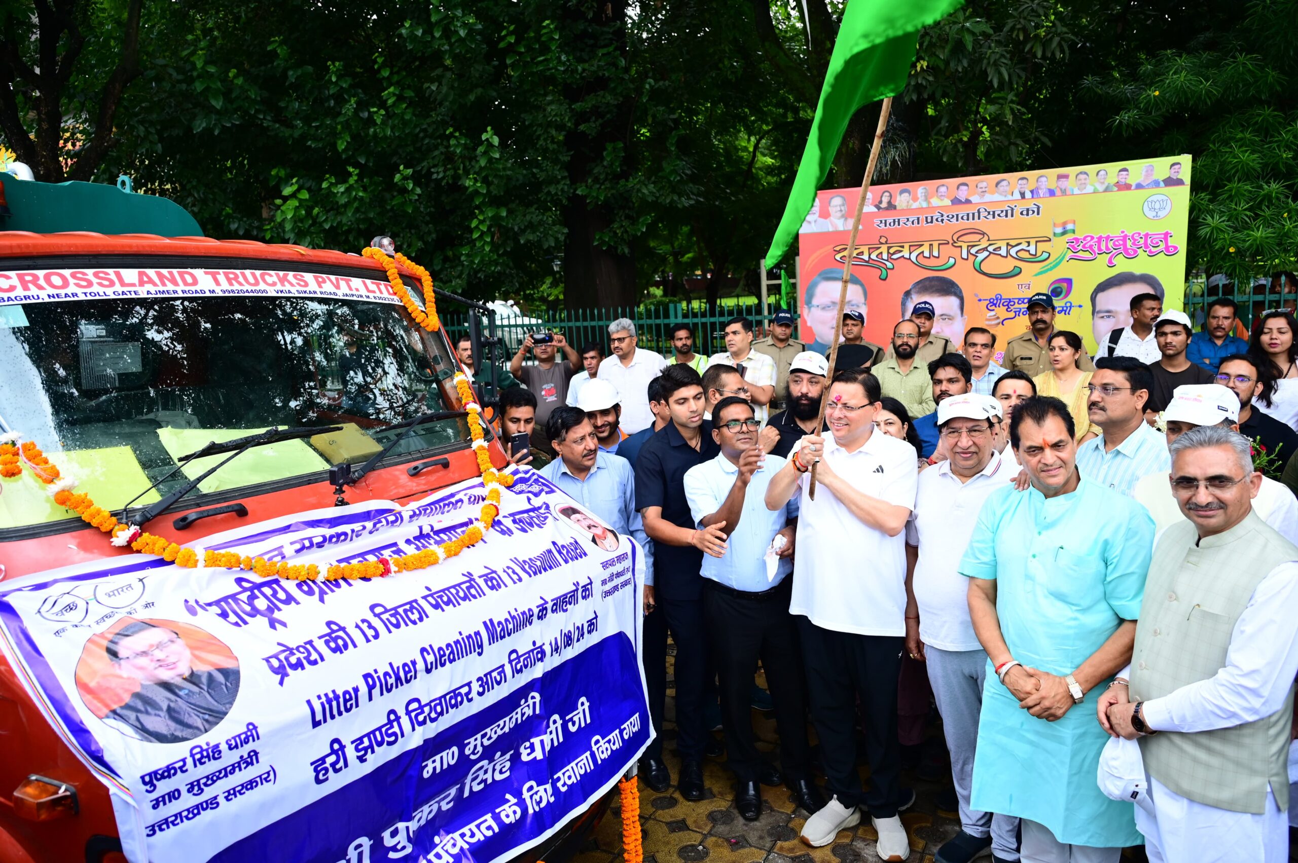 देहरादून। मुख्यमंत्री श्री पुष्कर सिंह धामी ने बुधवार को गाँधी पार्क देहरादून में विशेष स्वच्छता अभियान के अन्तर्गत ’स्वच्छता अपनाओ, बीमारी भगाओ’ कार्यक्रम में प्रतिभाग किया। इस दौरान उन्होंने स्वयं झाड़ू लगाकर स्वच्छता का संदेश दिया। मुख्यमंत्री ने इस अवसर पर पंचायती राज विभाग के माध्यम से 13 जनपदों के लिए स्वच्छता वाहनों ( लीटर पीकर क्लीनिंग मशीन) का फ्लैग ऑफ कर रवाना किया। मुख्यमंत्री ने कार्यक्रम के दौरान राष्ट्रपिता महात्मा गांधी की प्रतिमा की सफाई कर उन्हें श्रद्धांजलि दी एवं सभी को स्वच्छता की शपथ भी दिलाई।